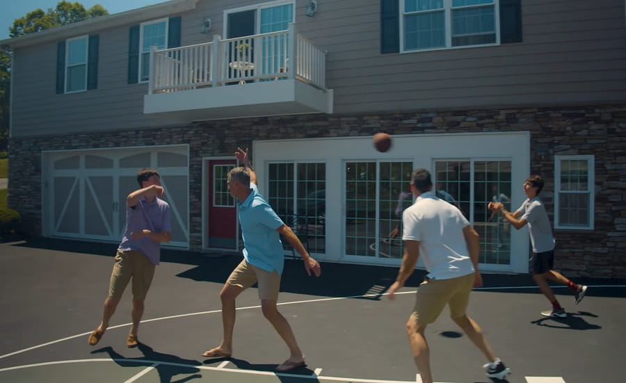 On a sunny fall day, Baltimore dads Joe Greco and John Holschuh teamed up to take on their teenage sons in a game of 2-on-2 basketball in the Greco family's driveway.